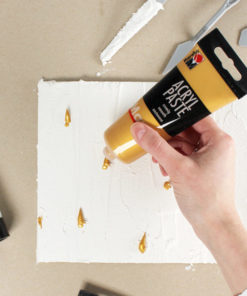 No home should be without pictures. They add cosiness and provide the finishing touch. Textured pictures with a 3D effect are particularly popular and are easy to create yourself with the Marabu Structured Art “All-in-One” set. Apply the acrylic pastes generously to the painting surface and then use the effect spatulas to form individual patterns. The relief structure in combination with the modern off-white finish of the acrylic pastes creates a sophisticated yet calm and modern effect. The Acrylic Paste Gold can also be used to create very special colour accents, as it can be filled or used to paint over the white pastes. There are no limits to creativity. The pastes are water-based, have good coverage, are lightfast, ideal for stencilling and can be combined without any problems. Drying time: 2-24 hours depending on the thickness of the application.