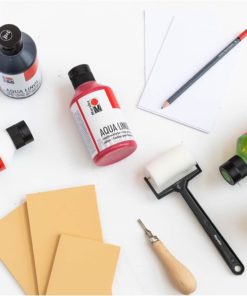 Ideal for printing on different materials – especially rice paper, cardboard, fabric, felt, etc. Linoleum, wood, polystyrene, cork, plastic, natural materials, etc. can be used as printing blocks.