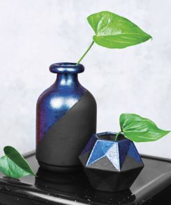 1. Ефектот на промена на боите се познава најдобро на темни окрругли предмети. За да направите цврста темна подлога, во сетот има акрилна црна мат боја Декормат и Акрилен маркер Art Painter.