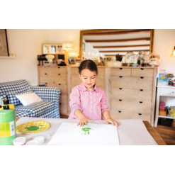 Creating the first works of art with little fingers is simple with this creamy, easily spreadable, water-based paint. It is particularly suitable for free painting in pre-school, school, therapy and at home. Marabu KiDS Finger Paint can be applied with fingers, hands, a sponge, spatula or brush on paper, cardboard, wood, glass (windows) and film. All colours can be mixed together, do not drip, have very good coverage and dry quickly. And when small artists get messy Marabu Finger Paint can be easily wiped off all smooth surfaces and washes out of fabrics at 30°C; paint marks on fabrics should be soaked in cold water before washing.