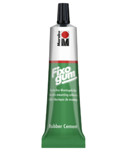 Fixo gum is elastic adhesive for graphic design and craft use. Glues paper, cardboard, paste board, plastic film and other flexible materials. For non-permanent or permanent fixing. Glued parts will not deform. Does not ripple the paper, ideal for photographs. Any adhesive residue can simply be rubbed off. On the basis of natural rubber and organic solvents. Not resistant to ageing. Acid-free.