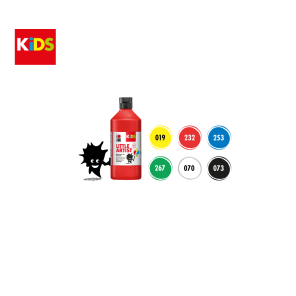 Детски уметнички бои за уметност и занаетчиство. Живописни бои погодни за хартија, картон, платно, дрво, камен и друго. Високо покривни, брзо сушат, нијансите добро се мешаат заедно. Протресете пред употреба. Случајните дамки може лесно да се отстранат од текстилот со перење што е можно поскоро на 30°C.