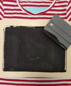 Screen printing is a method of printing that involves forcing the printing ink through a finely woven mesh onto the fabric using a squeegee. You can use paper or cling film (cut to A5) to create the template. On the areas of the fabric where no ink is to be printed, according to the pattern, the openings of the mesh are made impermeable to ink using a paper stencil.
