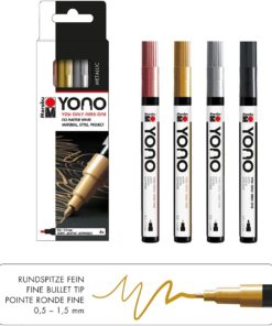 Contents: 4 x YONO Marker 0.5-1.5 mm (Rose-gold 734, Gold 084, Silver 082, Black 073)